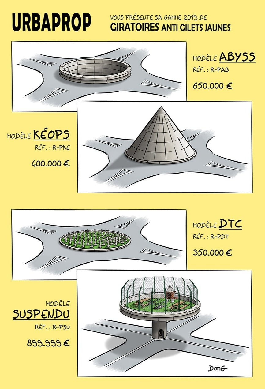 URBAPROP, l'entreprise d'aménagement urbain favorite des municipalités de droite, vous présente aujourd'hui sa gamme de « Giratoires anti Gilets Jaunes ».